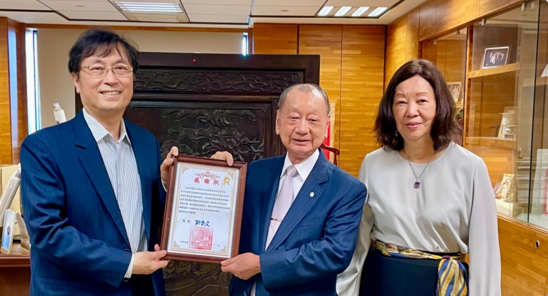此行台灣海洋大學許泰文校長表示,為感謝海商會張平沼董事長 協助促成嘉義縣政府和海洋大學共同合作推動智慧水產養殖示範區, 給予張忠誠教授帶領的 AIoT 養殖團隊所執行的計畫成果,提供很大的 商業化推動力量,許校長特別製作感謝狀委由張教授致送張董事長, 以表感謝。